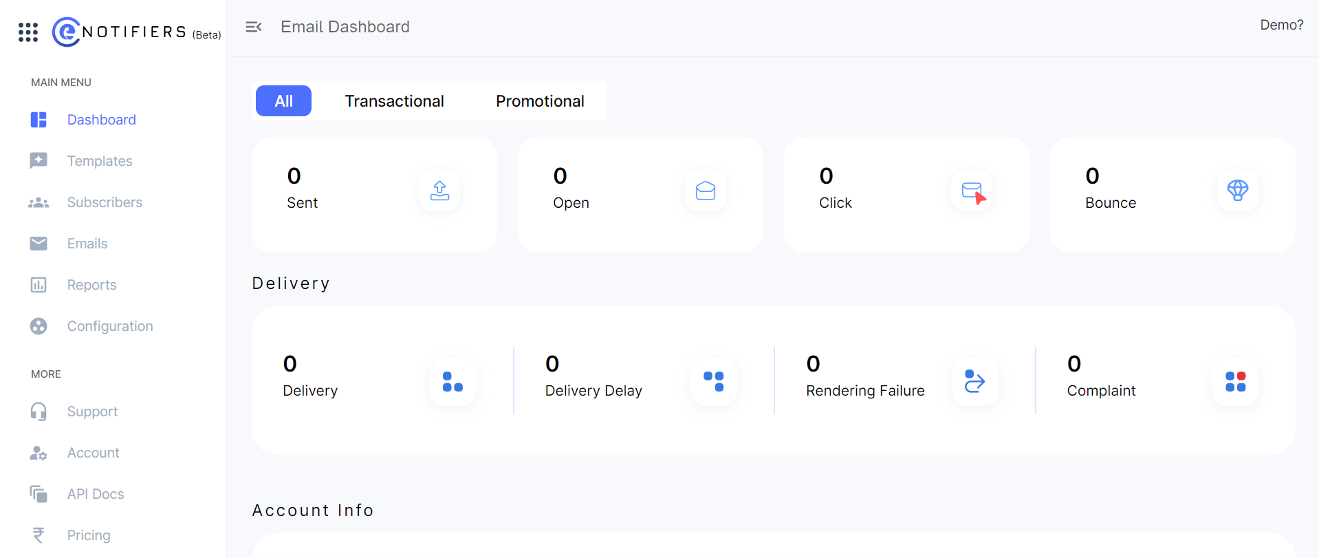 In the world of email marketing, understanding the various metrics and components that make up your email dashboard is crucial for optimizing your campaigns. Whether you're sending transactional or promotional emails, monitoring key performance indicators helps you refine your strategy and achieve better results. This guide will walk you through the essential components of an email marketing dashboard, specifically focusing on the Sent, Open, Click, and Bounce metrics, as well as the delivery section comprising Delivery, Delivery Delay, Rendering Failure, and Complaint. Additionally, we will explain the different categories of emails: All, Transactional, and Promotional.